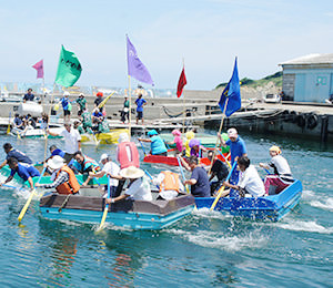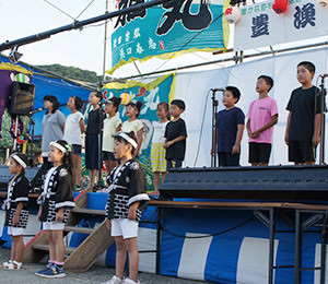 八幡神社の天王祭に合わせ、平成元年から毎年漁港で大漁を祈願して行われる夏祭り。 漁協主催の祭りらしく、子どもたちに人気の桃取で獲れた魚のつかみ取り、町内各団体対抗の船漕ぎ競争、この日のために一年を通して練習した太鼓、歌、ダンスなどのステージパフォーマンスで大いに盛り上がります。 町内だけでなく桃取以外から観光客も訪れ、桃取で獲れた海の恵みを使った食も振舞われます。 夜には花火が夜空に大輪を咲かせ夏の一日を締めくくります。