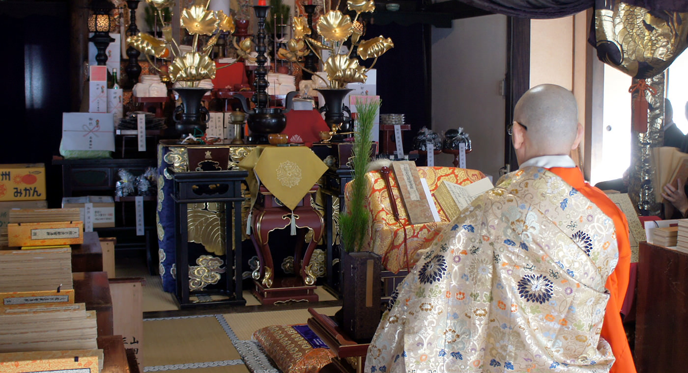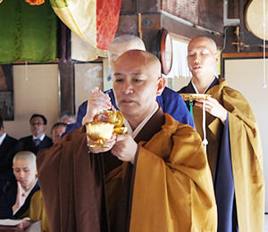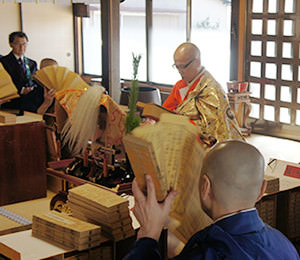 1月18日、桃源寺で行われる大般若会は、寺の事始めの法会です。 大般若会は経文を読むことにより、その功徳をもって、町内安全、海上安全、参列者の平安などをご祈祷します。大般若経、正しくは大般若波羅蜜多経といい、西遊記で有名な玄奘三蔵が訳した経典であるといわれています。その量、約500万字。600巻にまとめられた、仏教経典の中でも最も長いものです。 大般若会では、大般若経600巻を全て読みますが、膨大であり、全て正しく読むのは時間がかかるため「転読」がとられています。