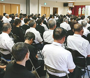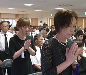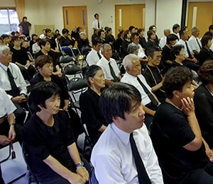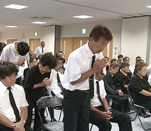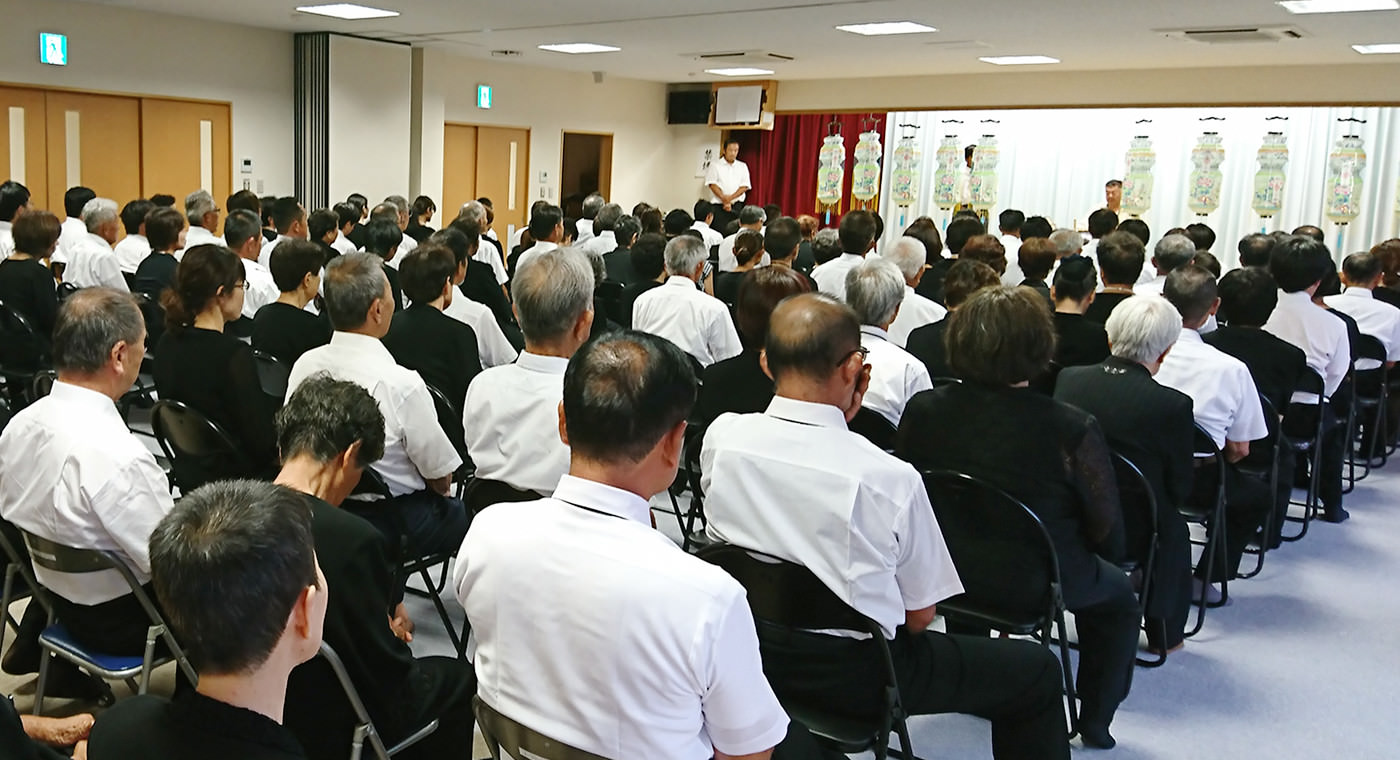 8月16日、町内会の主催で行われる法会。 かつては八幡神社下の広場で行われていましたが、現在はコミュニティセンター内で行われます。 初盆の家から切子提灯を持ち寄り飾られます。 町内会役員の叩く太鼓の音に合わせ念仏を唱えます。 桃取で亡くなった人たちの成仏を願うとともに、故人の成仏を願うため初盆の家の親族一同で念仏を唱えます。